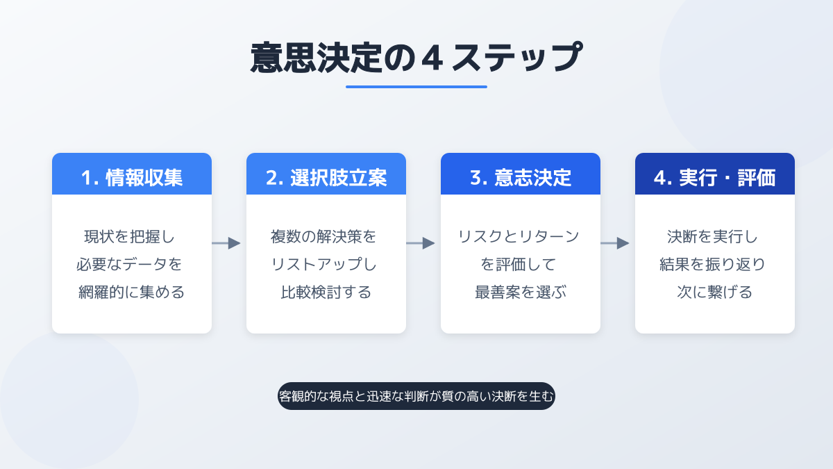 - 意思決定の促進: "Based on the data" と根拠を示して説得力を持たせる