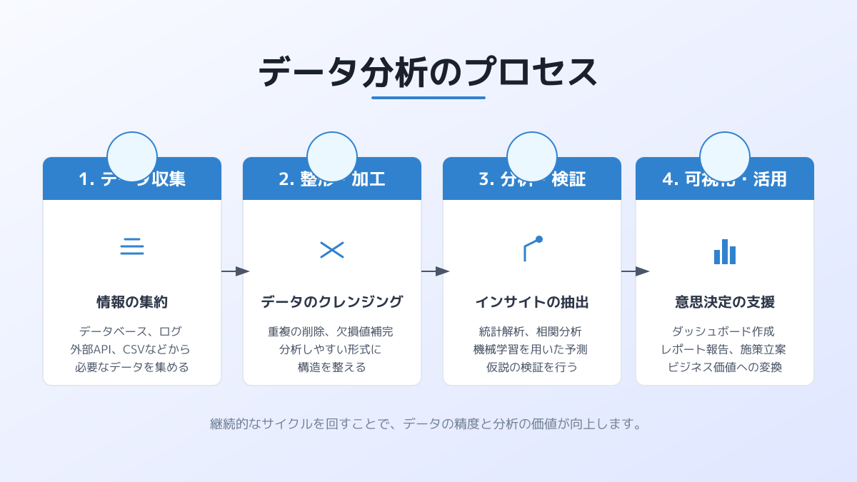 戦略立案の具体的な進め方については、データ活用戦略の立て方完全ガイド も併せて参考にしてください。