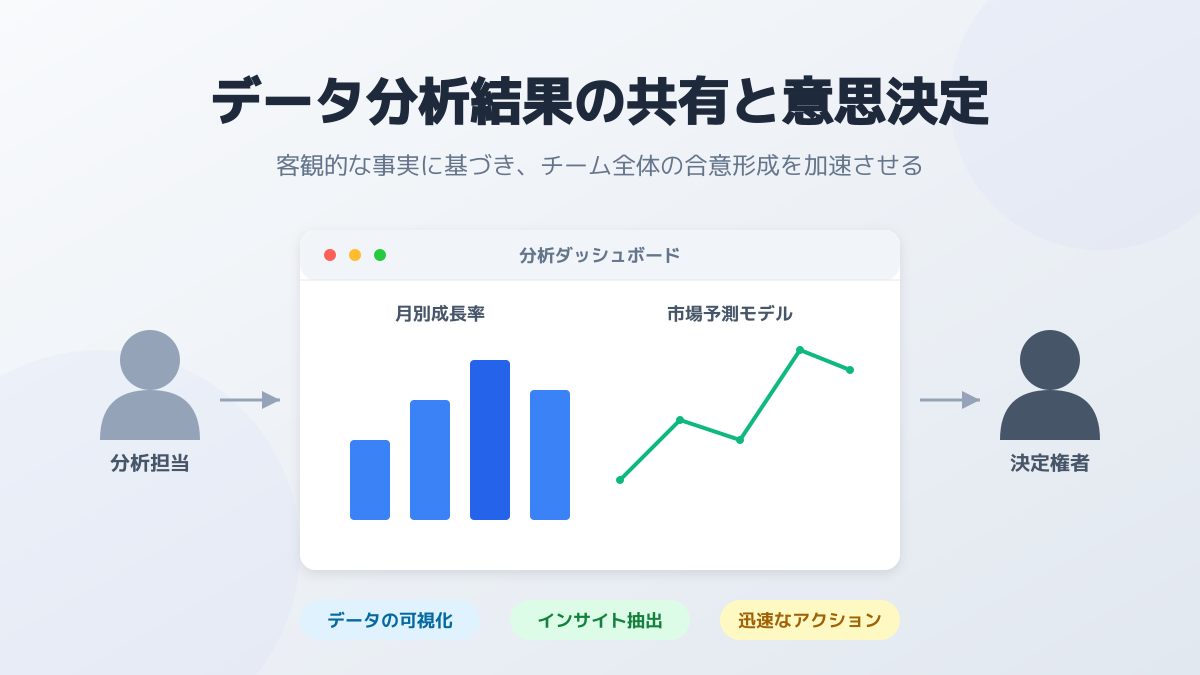 データに基づく意思決定を組織の文化として根付かせるためには、経営層が率先してデータ活用の姿勢を示すことが重要です。経営会議での意思決定プロセスを可視化し、データから得られたインサイトがどのようにビジネス成果に結びついたかを社内に共有してください。