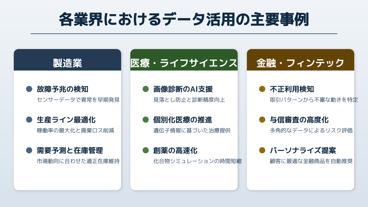 各業界におけるデータ活用の事例